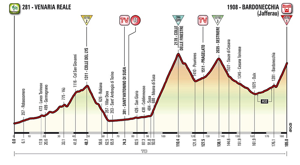 Mañana la antepenúltima etapa, también de alta montaña entre Venaria Reale y Bardonechia. 150 kilómetros entre los que destacan dos subidas. El Colle delle Finestre (Cima Coppi) tiene un pendiente prácticamente constante de 9.2%, con momentos más duros. Y la etapa terminará con los últimos 7 km todos en cuesta arriba con rampas al 9/10% con picos más altos hasta 14%. Todas las miradas puestas en las piernas de Yates y su capacidad para reaccionar a los ataques de sus rivales.
