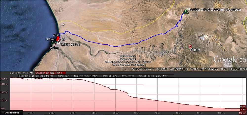 La carrera contará con 200 kilómetros de mountainbike dividido en 2 etapas. Parte desde el Hito Tripartito a 4.000 metros de altitud, en la frontera con Perú y Bolivia, donde comienza Chile, en la Comuna de General Lagos, hasta la Ciudad de Arica.