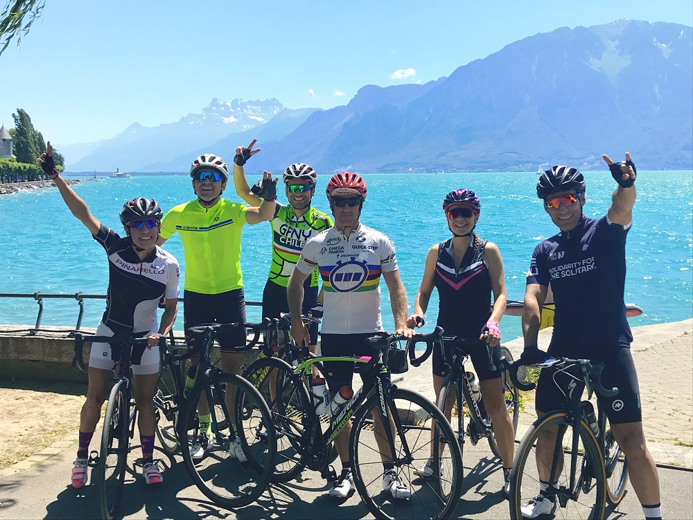 Un viernes de junio cruzamos el lago Leman desde Lausanne (Suiza) a Evián (Francia) para reunirnos 19 ciclistas chilenos y 1 catalán, entre los que el común denominador era la pasión por el ciclismo. No todos nos conocíamos, algunos sólo nos ubicábamos de nombre, pero desde el primer día fuimos una familia, donde compartimos vivencias que serán recordadas por siempre. Cada uno, sin importar el nivel, lo disfrutó intensamente.