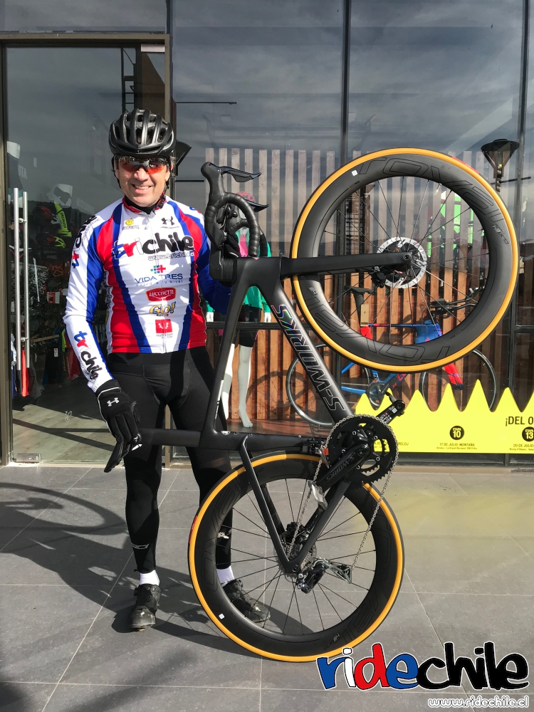 Pasé a buscarla el sábado 21 de julio a la nueva tienda Specialized en Chamisero. Ahí estaba ella. Esperándome. Con ganas de salir y quemar algunas calorías. Le puse mis pedales. Talla 54. El sillín a 75 cm del motor y desplazado 8 cm. Listo. Yo nervioso y ella probablemente ansiosa, como un caballo de carreras encerrado por algún tiempo en su corral.
