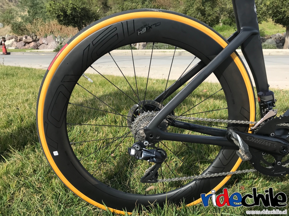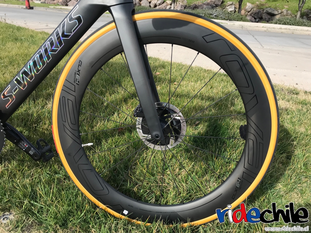 Las ruedas de perfil medio marca Roval modelo CLX 64 parecen ser la pareja de baile perfecta de esta bicicleta. Ya dijimos que los rodamientos de cerámica le dan un sonido especial y distinto al rodar, pero principalmente te hacen ganar algunos segundos extras a altas velocidades.