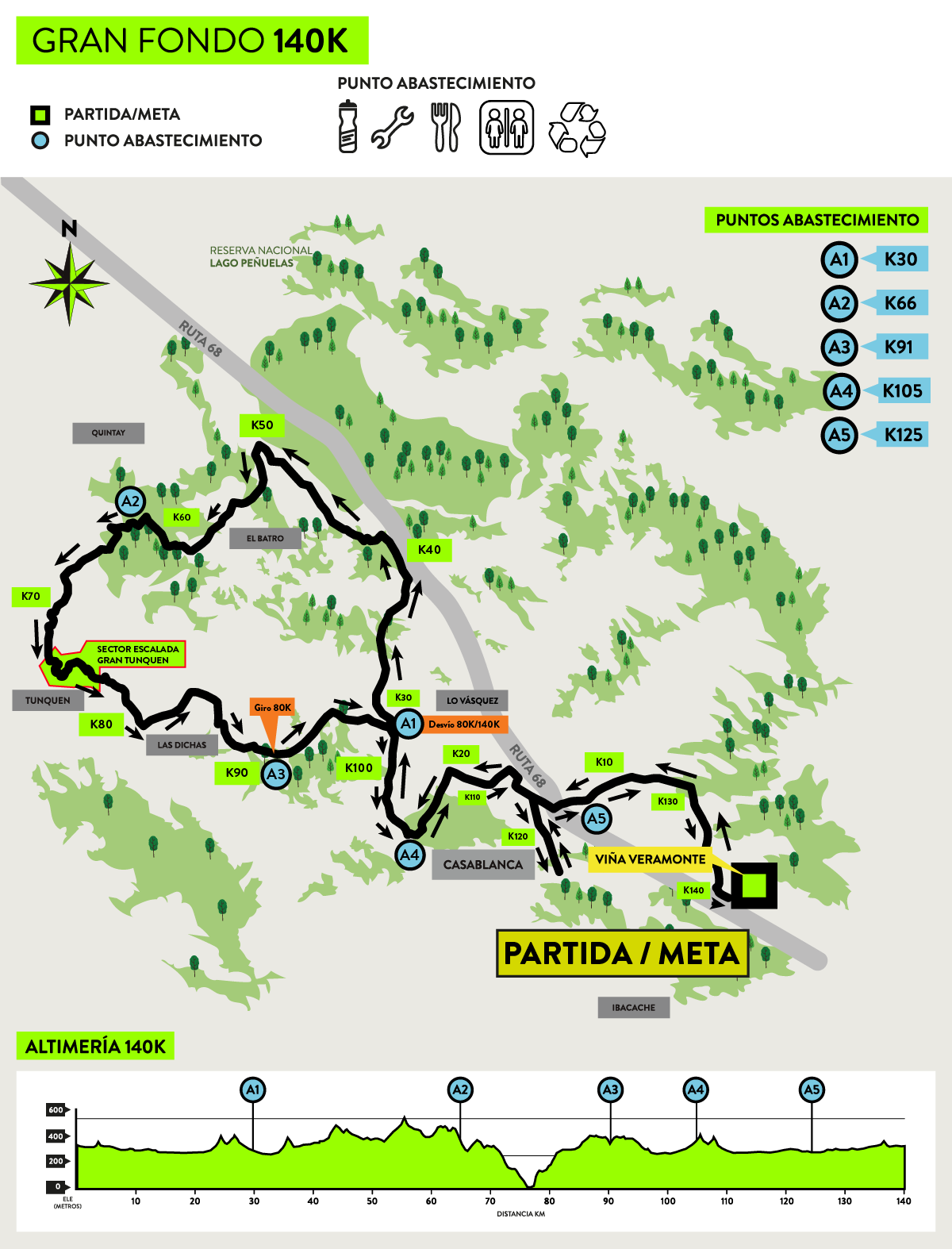 El GFNY Chile es una espectacular carrera de ciclismo en ruta que se realizará el domingo 25 de noviembre. Se competirá en dos distancias, partiendo ambas desde la Viña Veramonte en Casablanca. La principal tendrá 140 kilómetros, y habrá otra más corta de 80 kilómetros.
