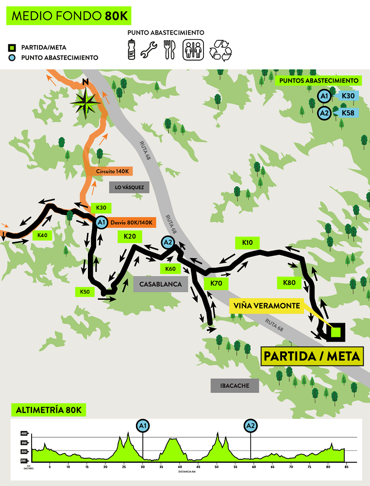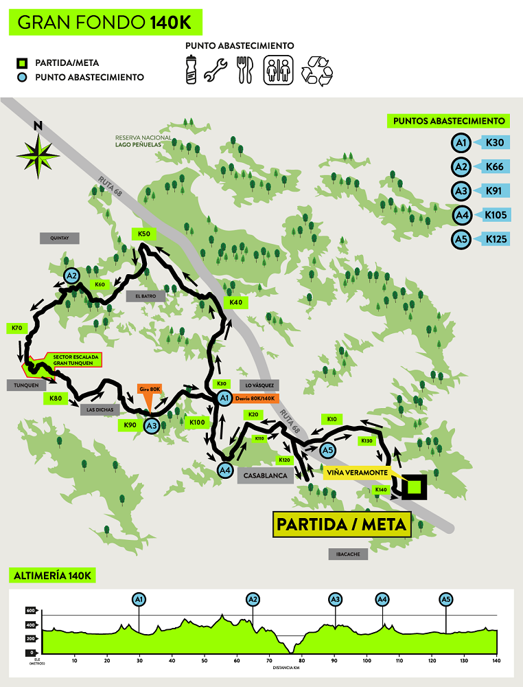 Se competirá en dos distancias, partiendo ambas desde la Viña Veramonte. La principal tendrá 140 kilómetros, y habrá otra más corta de 80 kilómetros.