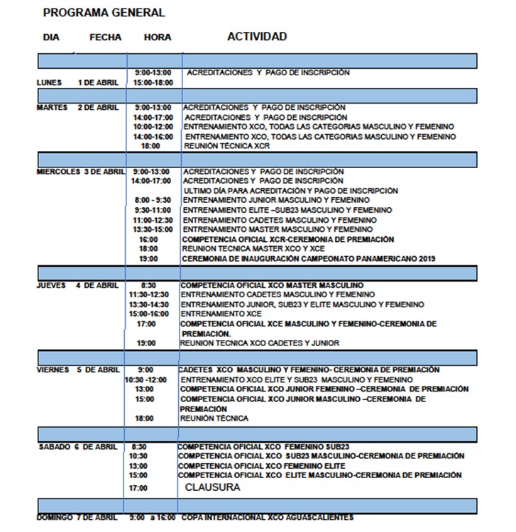 El evento comenzará este miércoles 3 de abril y se extenderá hasta el sábado 6 de abril. En estas fechas, cientos de ciclistas participarán de tres especialidades: XCE (Cross Country Eliminator), XCR (Team Reley) y XCO (Cross Country Olímpico), esta última prueba entregará los cupos a los JJOO.