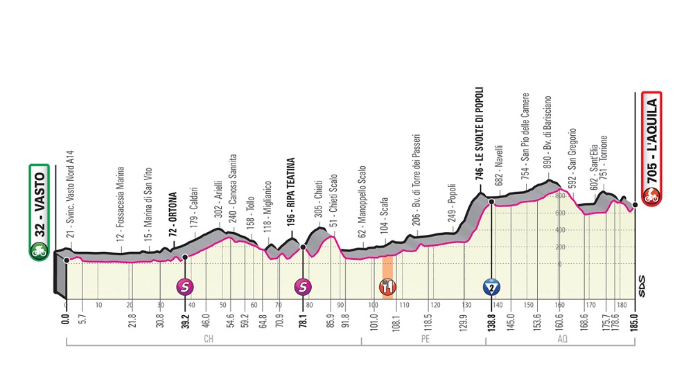 Mañana la séptima etapa de 180 kilómetros entre Vasto y L’Aquila, con varias subidas interesantes, entre las que destaca Le Svolte di Popoli, un puerto de segunda categoría.