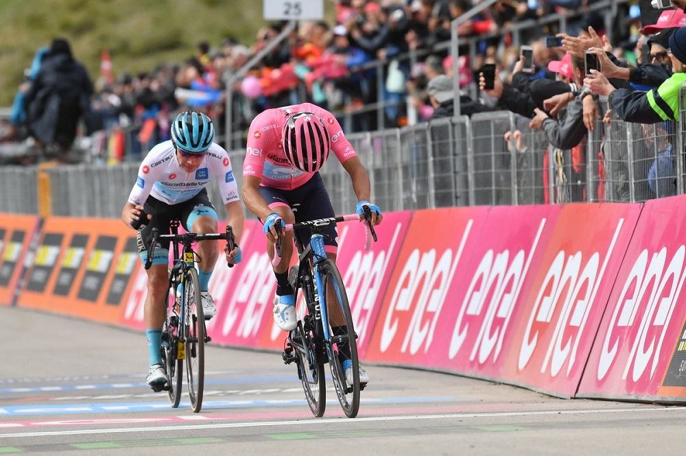 Tras la etapa de hoy no hay cambios en el top 3 de la general. Carapaz (Movistar) sigue llevando la maglia rosa. Su principal perseguidor es Vincenzo Nibali (Bahrain – Merida) a 1 minuto y 54 segundos. El tercero es el esloveno Primož Roglič (Jumbo-Visma), a 2:16 del líder.