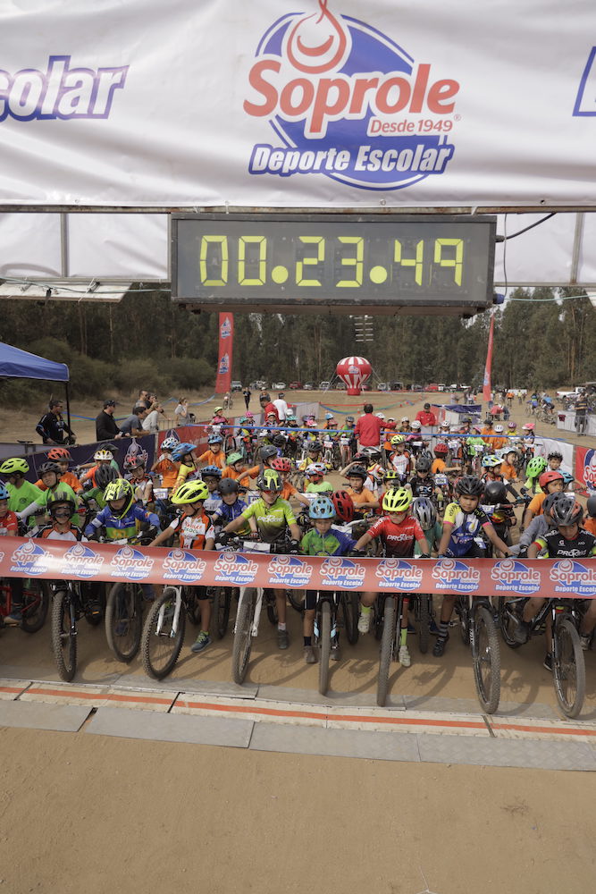 El Parque las Palmas, en Cartagena, fue el escenario para la segunda fecha de tres que tendrá este año el campeonato Escolar MTB Soprole, la tradicional prueba contó con la participación de más de 400 ciclistas que se organizaron en distintas largadas según años de nacimiento.