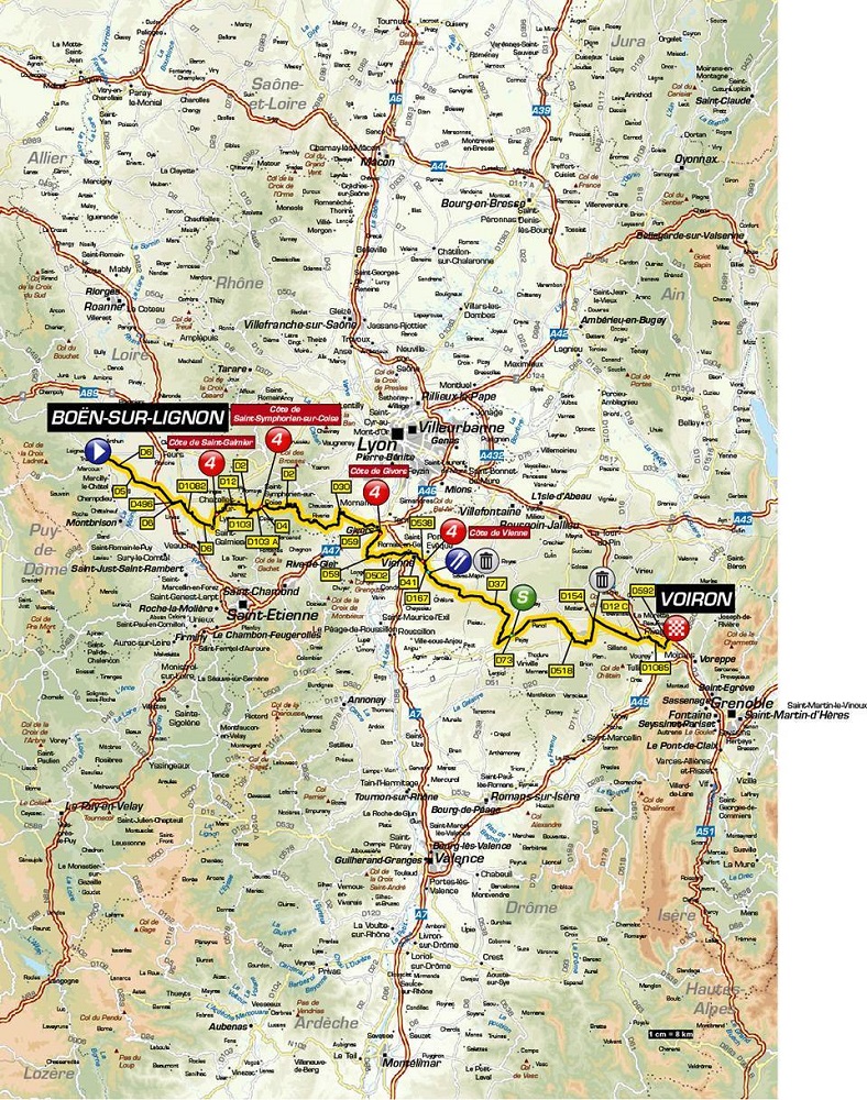 Mañana será la 5ta etapa etapa desde la localidad de Boën-sur-Lignon hasta Voiron, con una distancia de 201 km.
