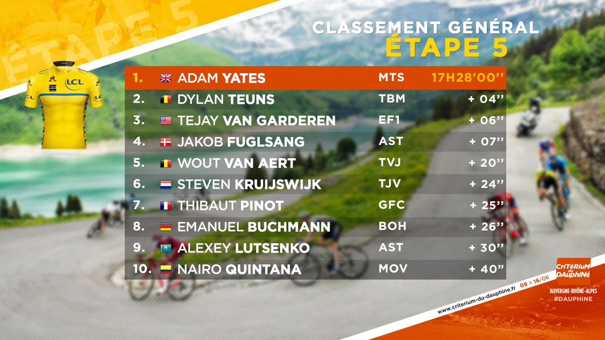 El viernes continuará el Critérium du Dauphiné en la 6ª etapa con una distancia de 228 km partiendo desde Saint-Vulbas hasta Saint-Michelle de Maurienne, una etapa caracterizada por ser de montaña y que alcanzará durante 8,1 km un punto de 6% de altimetría, y al final presentará un sprint intermedio para los corredores.