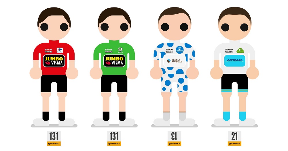 - Maillot verde Skoda (clasificación por puntos): Primoz Roglic (Jumbo-Visma) 143 pts. Asume provisionalmente -como segundo mejor-, Tadej Pogacar (UAE Team Emirates) con 107 pts