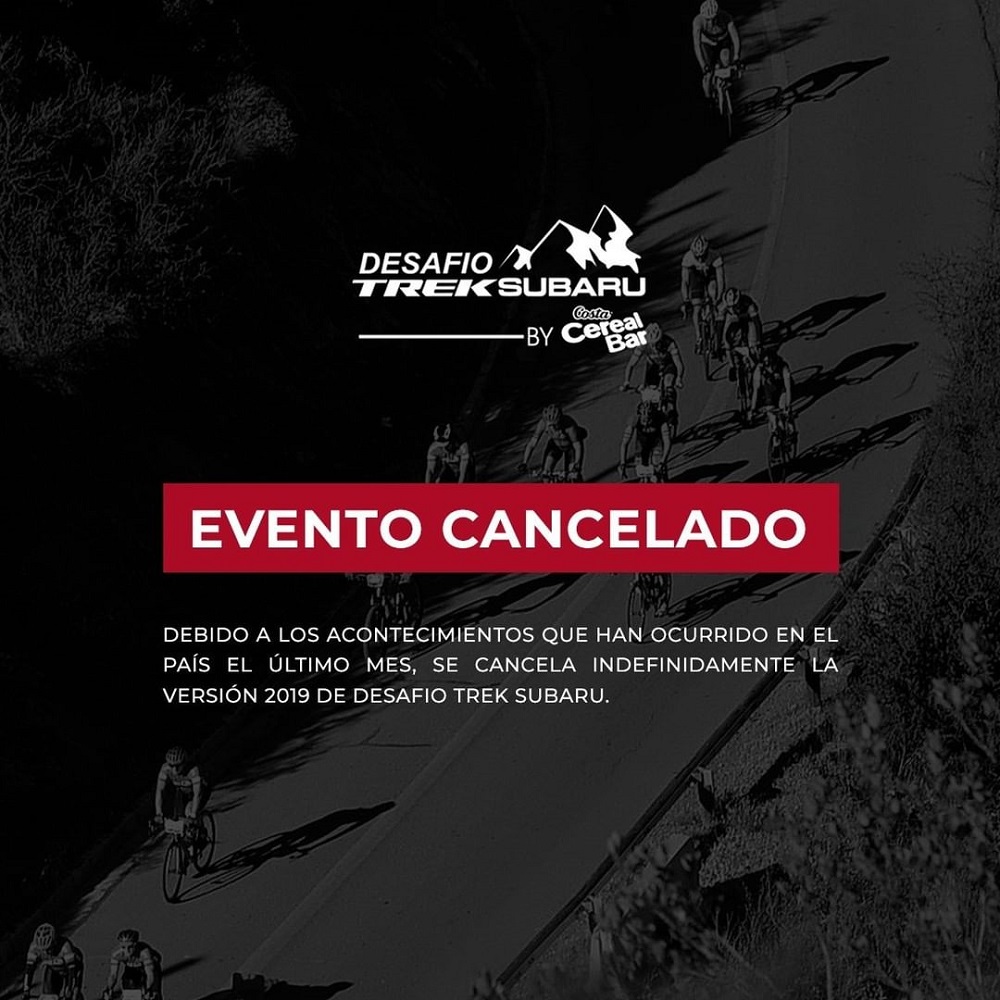 “Debido a los acontecimientos que han ocurrido en el país el último mes, se cancela indefinidamente la versión 2019 del Desafío Trek Subaru.