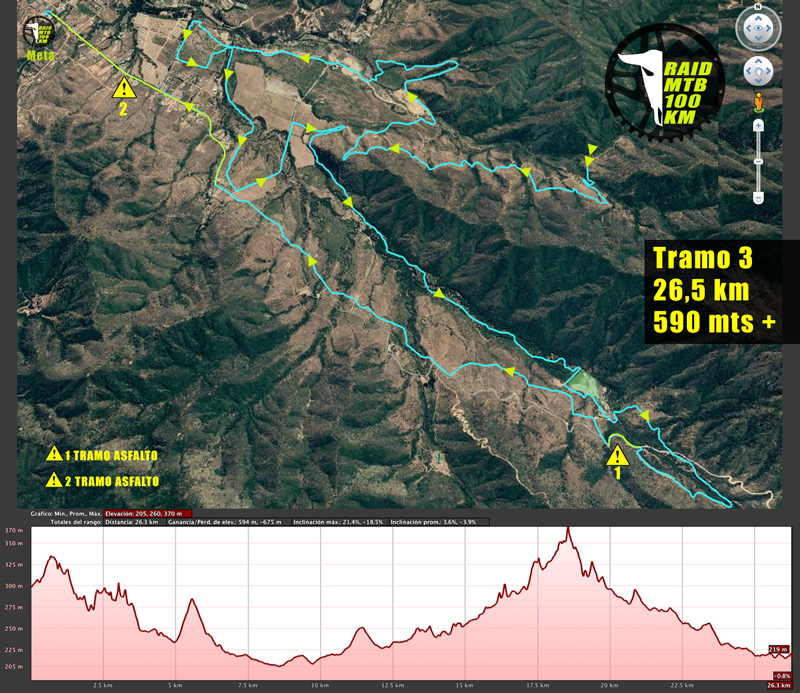 El circuito tendrá Ruta mixta y variada en el Cajón de Marga Marga (El Tortoral), con diversas superficies de terreno, comprende tramos de viejos caminos, senderos y un tramo de asfalto. Cada una ofrecerá diferentes tipos de dificultad (baja, media y alta) en los 95 km totales de recorrido y 2.850 metros + (aproximados).