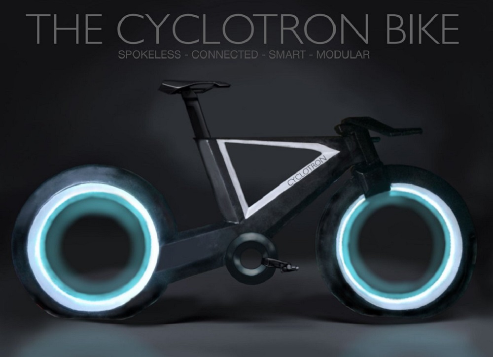 La innovadora Cyclotron, inspirada en los vehículos de dos ruedas del clásico filme de ciencia ficción Tron, posee muchas características, una de ellas, es no poseer cadena, pero si un panel integrado eléctrico que se potencia con el pedaleo e impulsa la rueda.