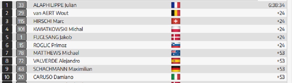 “En este momento es muy difícil decir algo. Quiero dar las gracias a todos mis compañeros que hoy realmente creyeron en mí. Todos hicieron un gran trabajo. Fue un sueño de mi carrera. A veces, estaba tan cerca y nunca subí al podio. Vine aquí con mucha ambición y es un día de ensueño para mí «, dijo Alaphillippe, que engorda su palmarés: Milán-Sanremo 2019, La Flèche Wallonne (2018, 2019), Clásica San Sebastián (2018) y Strade Bianche 2019.