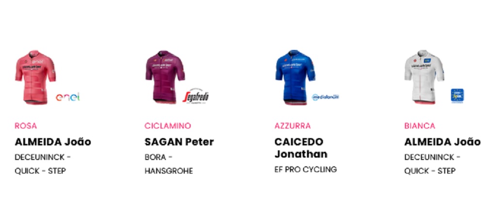 - Maglia Rosa (Clasificación General): Joao Almeida (Deceunick-Quick Step) 11:06:36