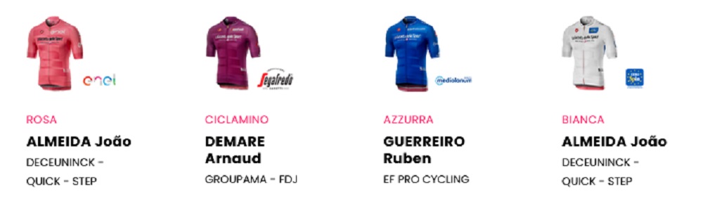 - Maglia Bianca (Joven): Joao Almeida (Deceunick-Quick Step) 43:41:57