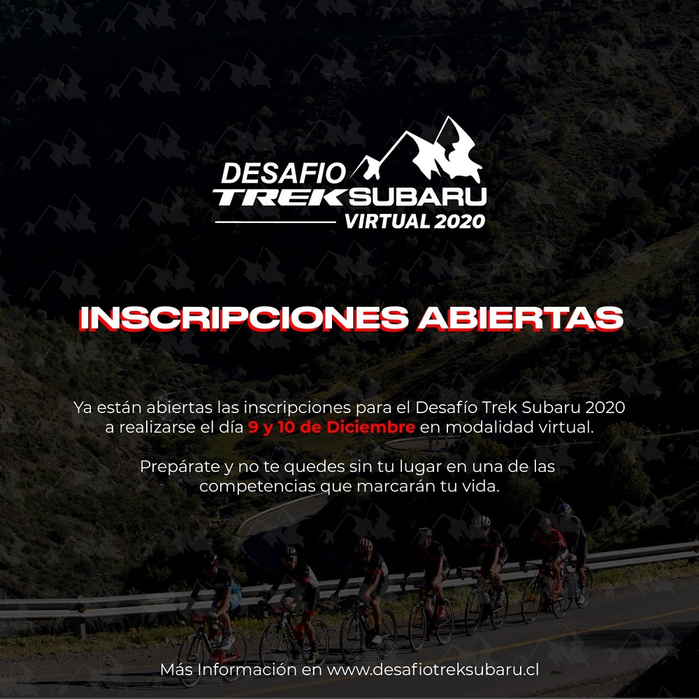 Una de las carreras más masivas del calendario nacional ya abrió sus inscripciones: el Desafío Trek Subaru 2020. Este año la carrera será completamente online por primera vez, por las razones que ya conocemos. La carrera será el próximo 9 y 10 de diciembre, contando con transmisión en vivo desde nuestro canal de YouTube Grupo Trichile y una completa #CoberturaRidechile.