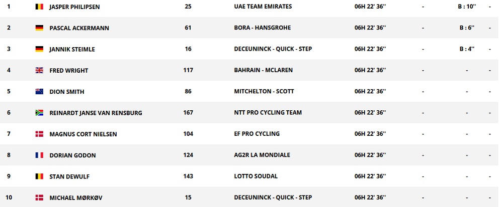 - Maillot Rojo (Clasificación General): Primoz Roglic (Jumbo-Visma) 60:19:41