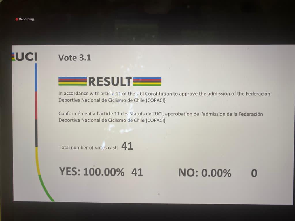 “…el Congreso de la UCI se decidió excluir el Federación Ciclista de Chile, la Unión Ciclista Búlgara y Asociación Ciclista de Montenegro, por violaciones graves de sus obligaciones de conformidad con la Constitución de la UCI, en particular en lo que respecta a la gobernanza y las obligaciones financieras. Luego se afiliaron tres nuevas Federaciones para estos tres países: la Federación Nacional de Chile, la Federación Nacional de Bulgaria y la Federación Nacional de Montenegro”, detalló la UCI en su sitio web.