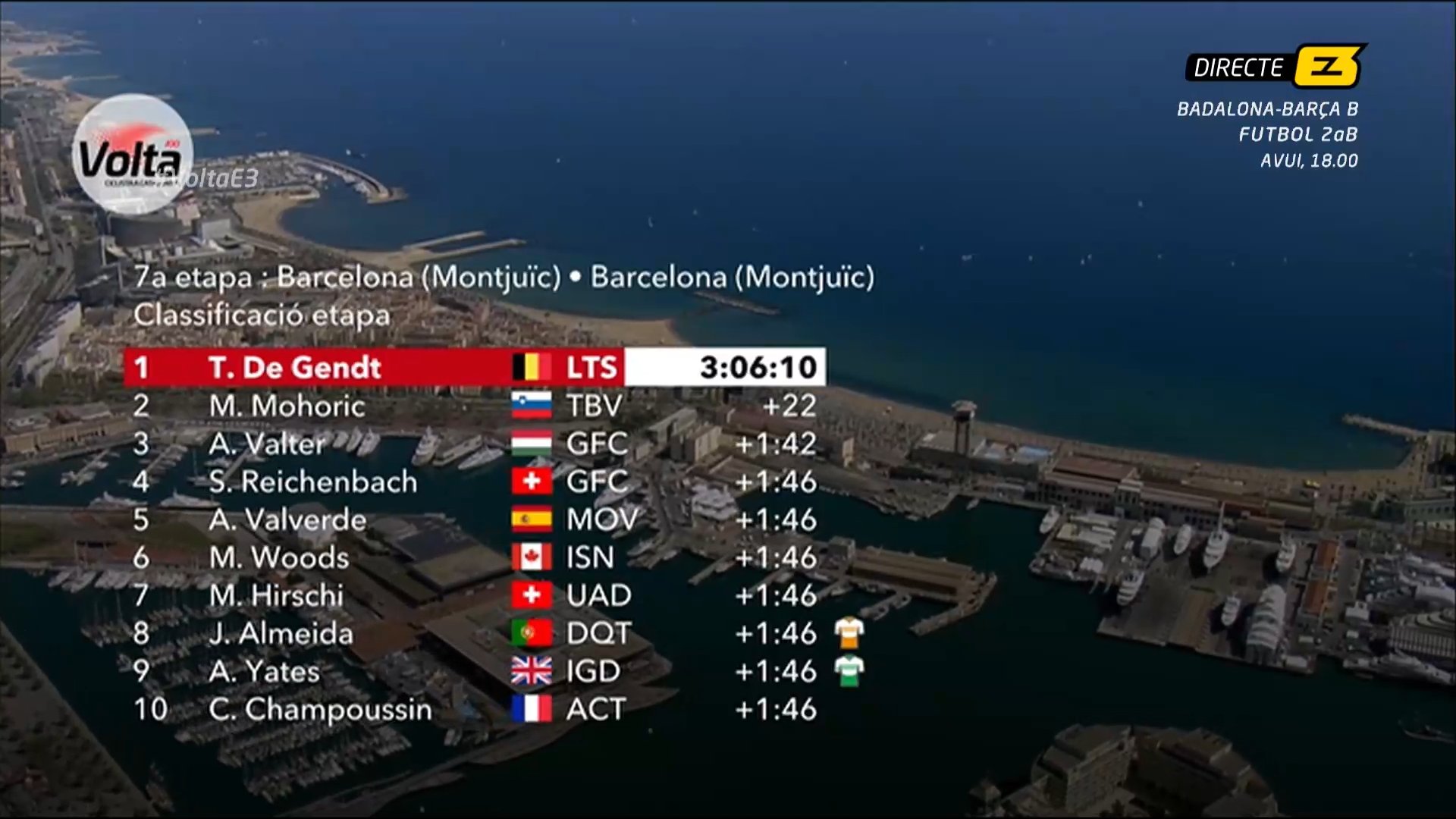 Este domingo fue la séptima y última etapa, que se desarrolló íntegramente en Barcelona con 133 km de media montaña, donde el ganador fue el belga Thomas De Gendt (Lotto Soudal), registrando tiempo de 3:06:10.