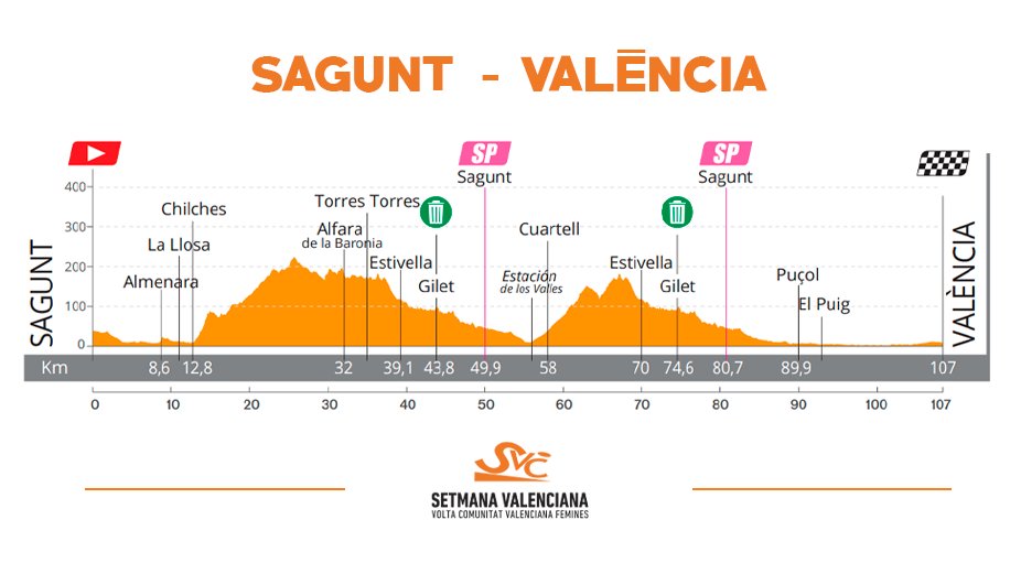 La Setmana Ciclista Valenciana Féminas continúa el sábado 8 de mayo con la 3ª Etapa, entre Sagunt y Valencia con 107 km de recorrido.