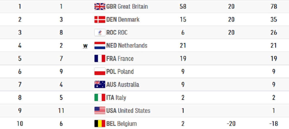 En el ciclismo de pista este viernes, en las finales disputadas en el Velódromo de Izu, destacaron el equipo femenino madison de Gran Bretaña y Harrie Lavreysen de los Países Bajos, que encabezó el 1-2 que hizo su país en la prueba masculina de velocidad.