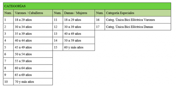- Medallas para el primer, segundo y tercer lugar de la clasificación general, tanto damas como varones.