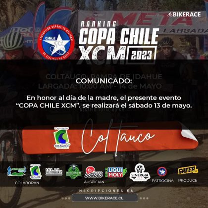 La Copa Chile Marathon 2023 que se iba a realizar el 14 de mayo en La Pampa de Idahue, comuna de Coltauco (región de O’Higgins), modificó su fecha original puesto a que coincide con el Día de la Madre y fue modificada para el 13 del mismo mes.