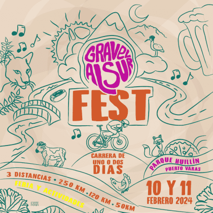 El 10 y 11 de febrero de 2024 se llevará a cabo el Gravel al Sur Fest, un festival de ciclismo de verano que se desarrolla en el hermoso Parque Huillín Aventura, a orillas del Río Maullín en la comuna de Puerto Varas. El Fest cuenta con las distancias 250K, 120K y 50K, además de múltiples actividades para disfrutar en familia.