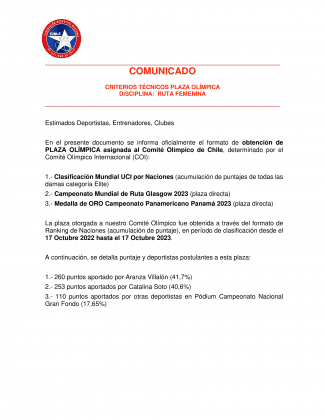 A continuación, puedes ver el comunicado de la Federación Deportiva Nacional de Ciclismo de Chile o puedes descargarlo AQUÍ
