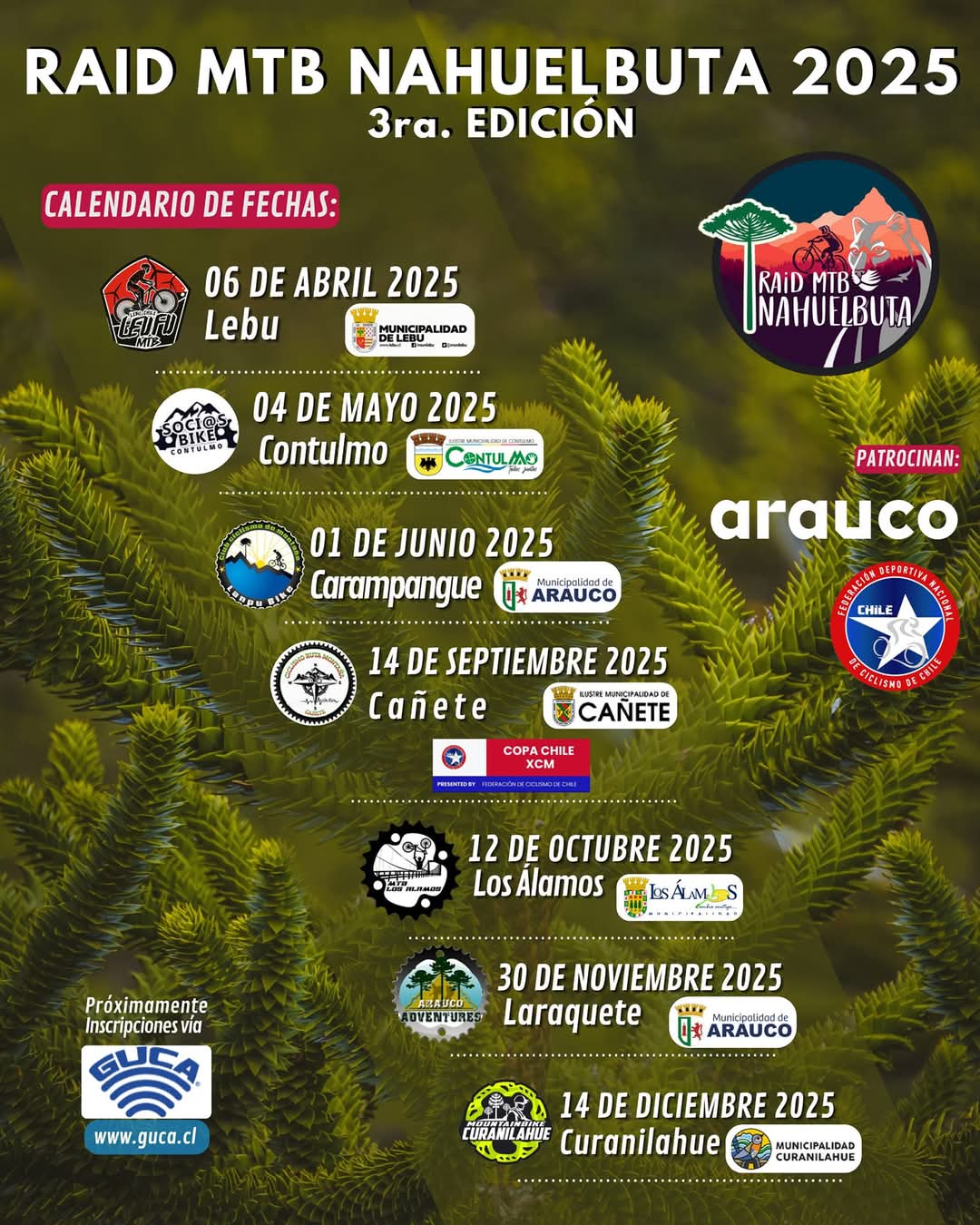 El Raid MTB Nahuelbuta regresa en 2025 con su tercera edición, consolidándose como uno de los campeonatos atractivos del ciclismo de montaña en Chile, en la modalidad de Cross Country Maratón (XCM) y que pronto abrirá sus inscripciones.