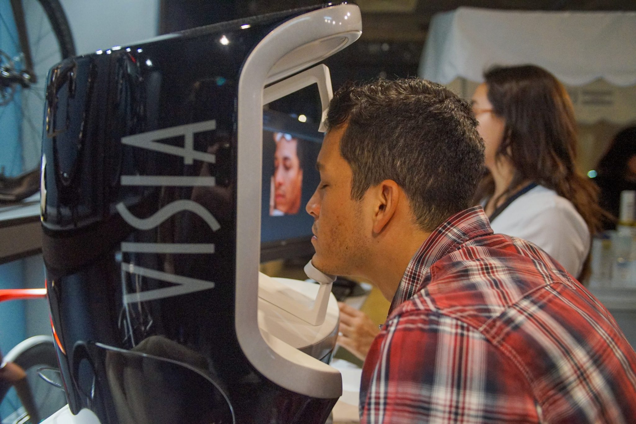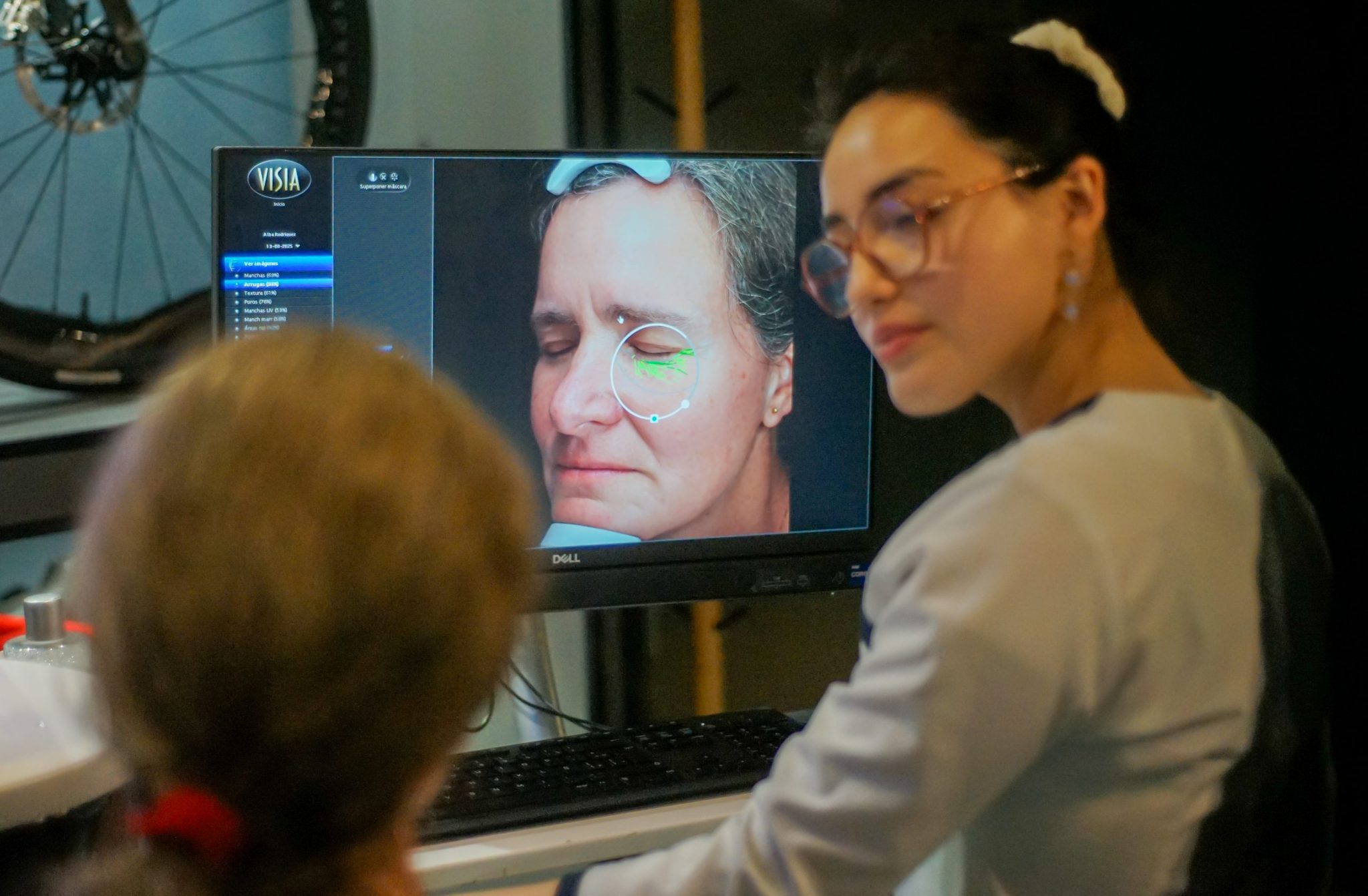 También se dispuso de una máquina que realizaba un análisis facial que consistía en visualizar “las manchas solares, arrugas que van acumulando, la textura de la piel, porosidades abiertas y también si tenemos la piel bastante sensible”, según comentó Daniela, Dermo de ISDIN.