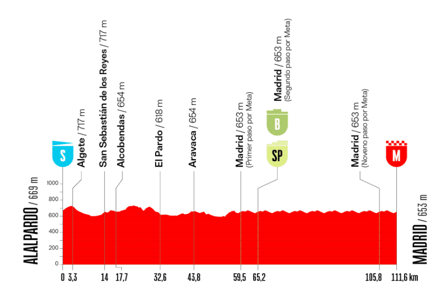 Finalmente La Vuelta 2025 cerrará con la etapa 21, que se disputará el domingo 14 de septiembre y consiste en una carrera tipo llana de 111.6 km desde Alalpardo hasta Madrid