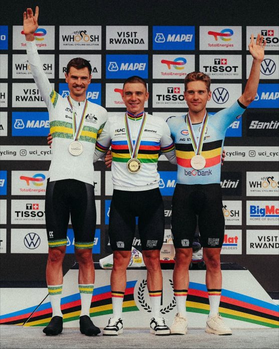 En la carrera masculina, el ciclista belga obtuvo el primer lugar por tercera vez consecutiva, en la competencia que contempló un recorrido de 40.6 kilómetros en Ruanda y logró registrar un tiempo de 49:46. El segundo lugar fue para el australiano, Jay Vine (+1,14.80) y completando el podio el otro belga, Ilan Van Wilder (+2,36.07).