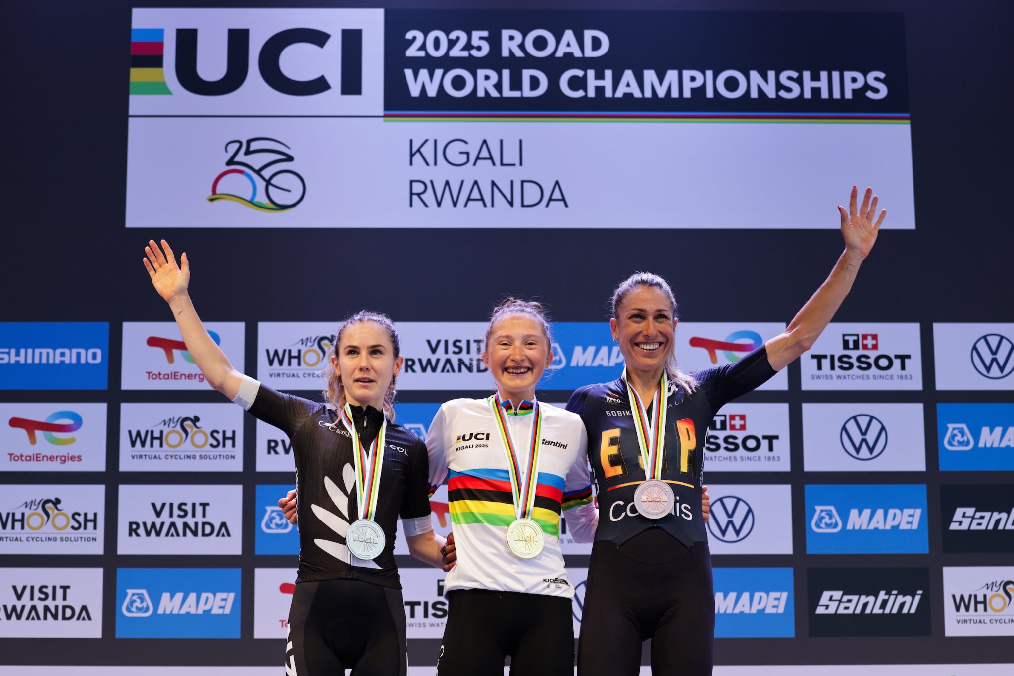 Los ciclistas, Tadej Pogačar y Magdeleine Vallieres Mill ganaron la medalla de oro en la prueba de élite del Mundial de ruta 2025 disputado en Kigali, Ruanda, las competencias se realizaron el 27 (damas) y 28 de septiembre (varones).