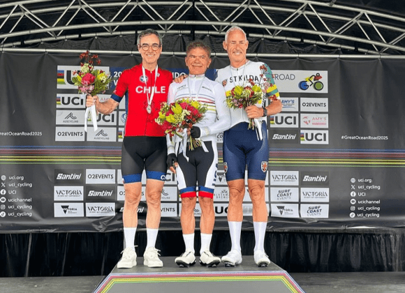 El chileno Gonzalo Eguiguren sigue subiéndose al podio y ahora se quedó con el segundo lugar categoría 65-69 años en la prueba de Gran Fondo de ruta (131K) del Campeonato Mundial de Gran Fondo UCI que se desarrolló en Lorne, Australia.