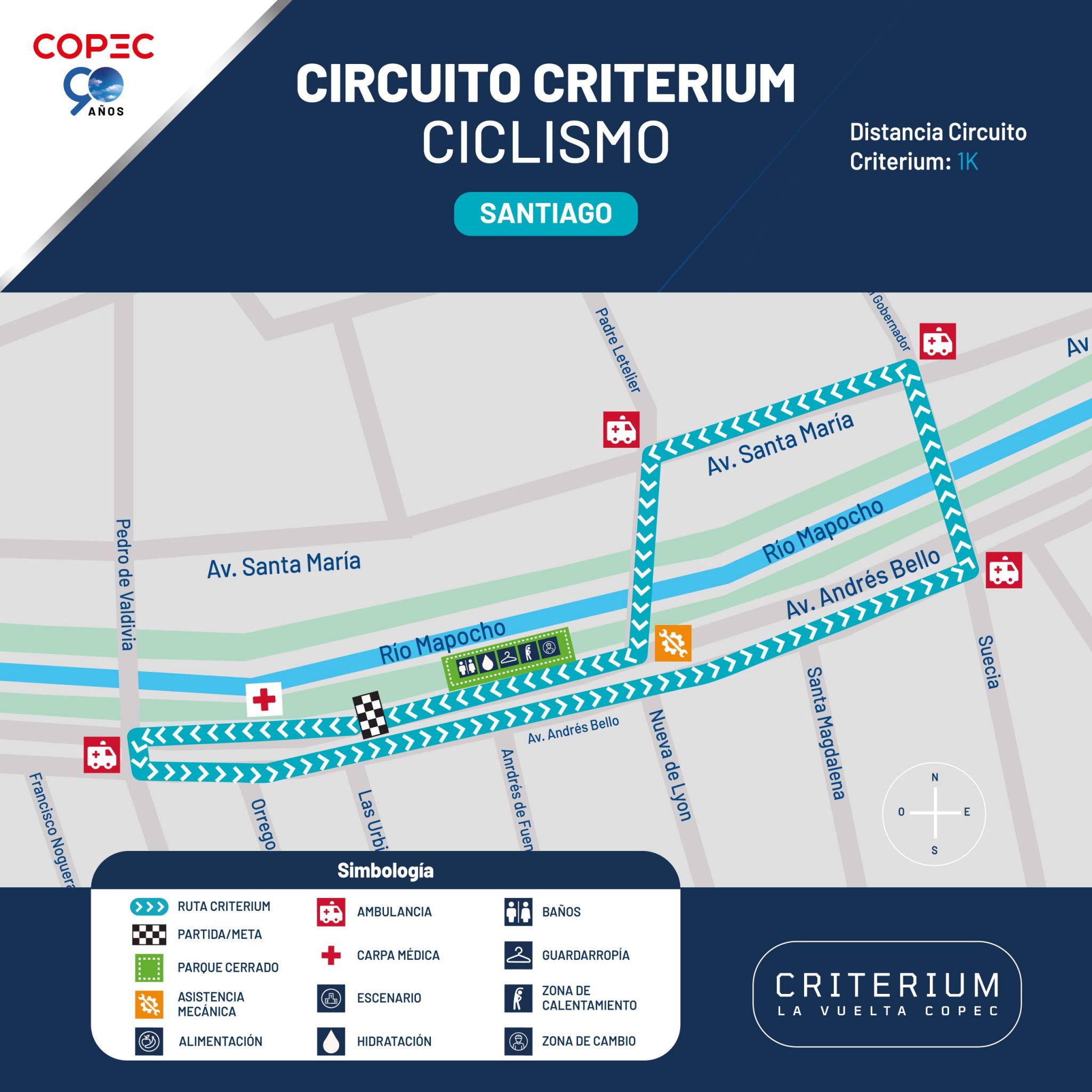 El próximo domingo 5 de octubre se llevará a cabo la primera fecha de la Critérium – La Vuelta Copec 2025 en el Parque Uruguay de Providencia, Santiago de 08:00 a 12:00 horas, contará con un circuito corto, cerrado y lleno de curvas de donde cada giro tiene 1km y compiten a toda velocidad durante 30 minutos aprox.