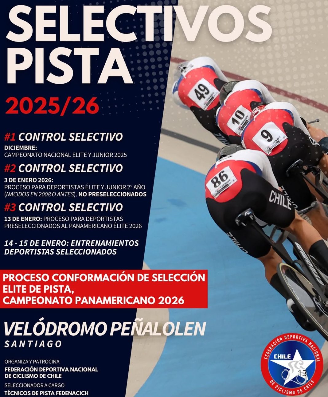 La Federación Nacional de Ciclismo de Chile organizará y patrocinará los controles selectivos de pista que se desarrollarán en el Velódromo de Peñalolén de cara al Campeonato Panamericano 2026.