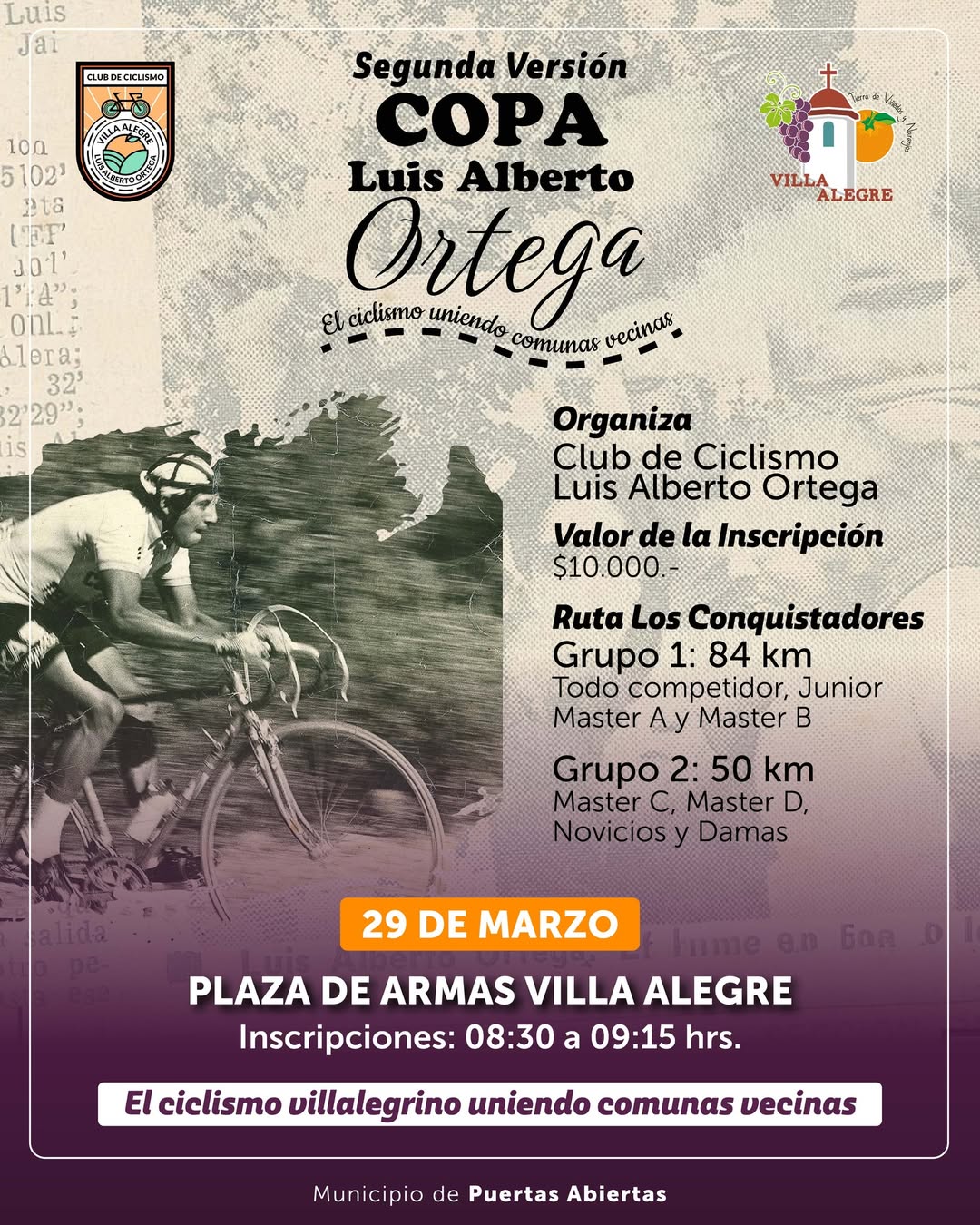 La Plaza de Armas de Villa Alegre será el escenario principal de la 2ª edición de la Copa Luis Alberto Ortega que se llevará a cabo el domingo 29 de marzo en la región del Maule con distancias de 84K y 50K.